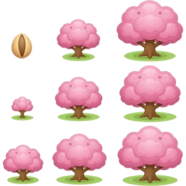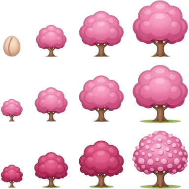 create a pink cherry tree emojis from 0 to 100, there 0 is the seed and the 100 is the full tree. with more than tre levels and near to the real one emoji