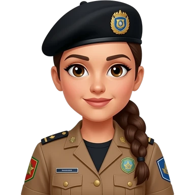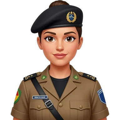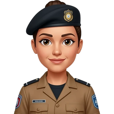 Sargento Gianne Policial militar da bahia feminina morena com cabelo amarrado boina preta e farda marrom e camisa preta por dentro da farda emoji