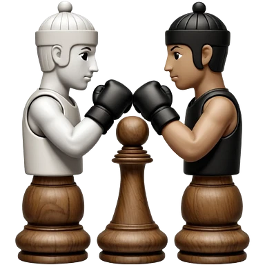 Chess pieces boxing, holding guard and jabbing, on top of an egg sandwich emoji