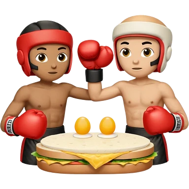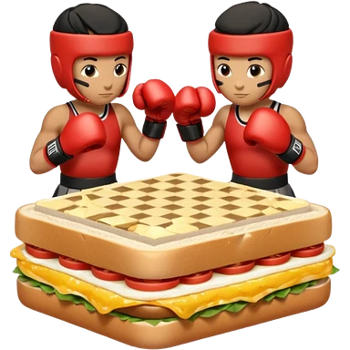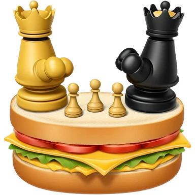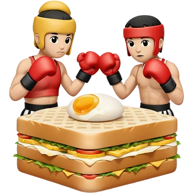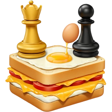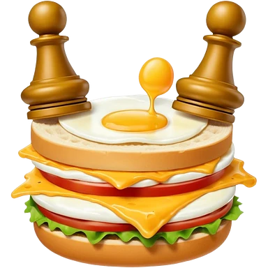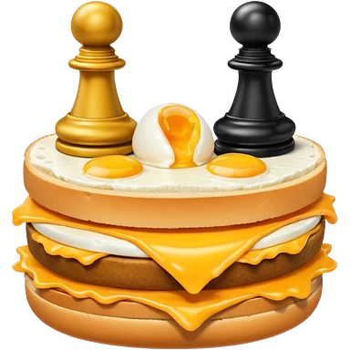 Chess pieces boxing, holding guard and jabbing, on top of an egg sandwich emoji | AI Emoji Generator
