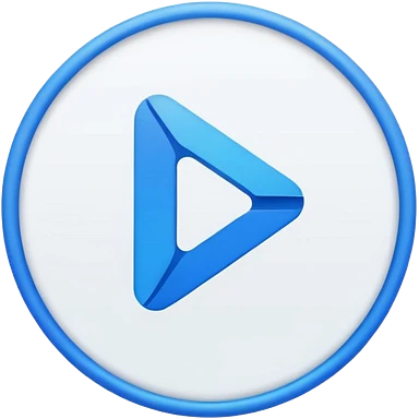 cute red mini robot mascot with a large white play button on its chest, rounded body, glowing eyes, small arms and legs, friendly and helpful expression, futuristic but adorable, flat emoji-like character emoji