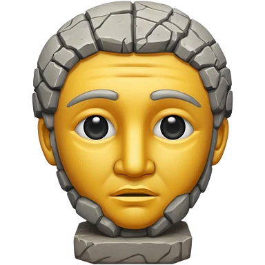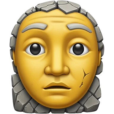 Rock creature with glowing eyes and 'GM' behind, featuring a blocky body of dark gray stones, orange-brown arms and chest patch, and seven glowing yellow eyes—three on the left, one in the middle, and three on the right—arranged on its head, with large bold 'GM' letters in the background. emoji