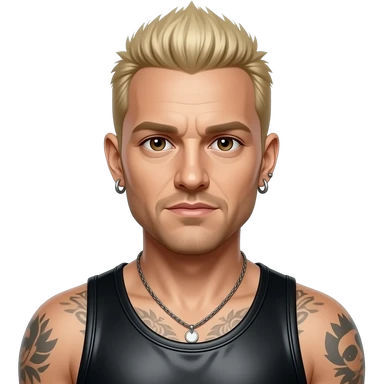 Chester Bennington from Linkin Park with dark brown eyes, blonde spiked hair, black metallic tank top, necklace and earrings emoji