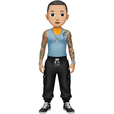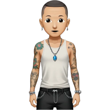 Chester Bennington with blonde hair, dark pink sequin baggy pants, shirtless with necklace emoji | AI Emoji Generator