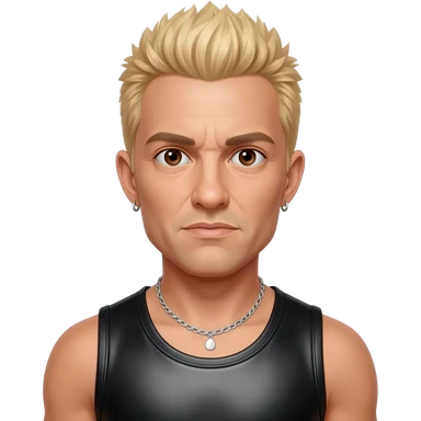 Chester Bennington with dark brown eyes, blonde hair, black metallic tank top, silver necklace emoji