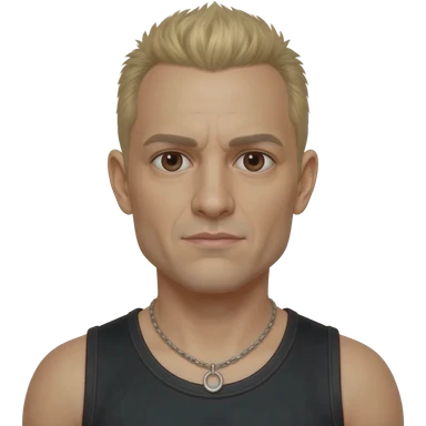 Chester Bennington with brown eyes, blonde hair, black metallic t-shirt, silver necklace emoji