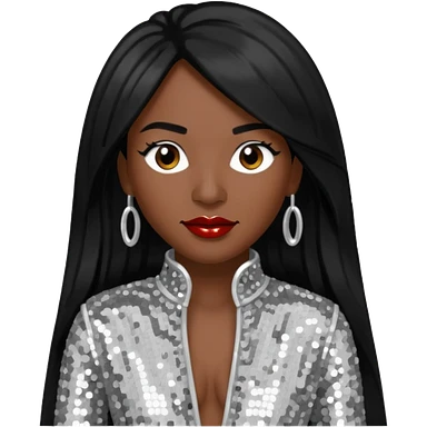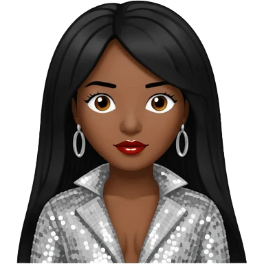 Chilli from TLC with dark skin, long black hair, silver outfit emoji