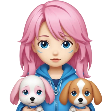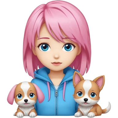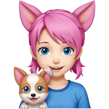 "Chibi-Anime-Girl mit Hundeohren, pinken Haaren, großen blauen Augen und breitem Grinsen." emoji