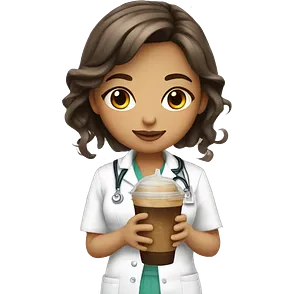 chibi girl with long brown hair, blue eyes and brown glasses emoji