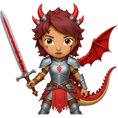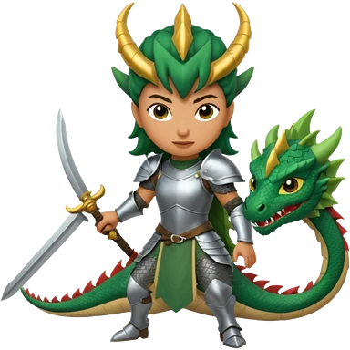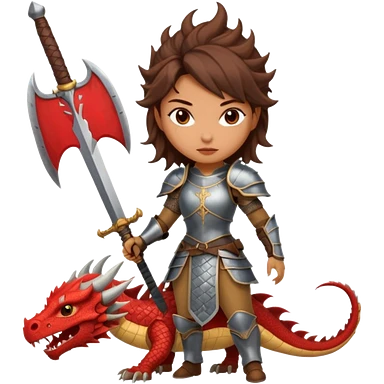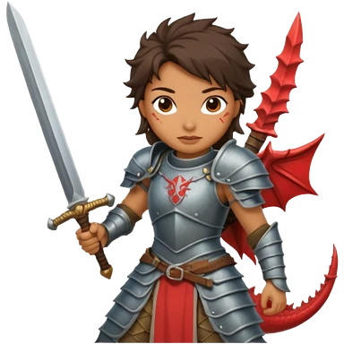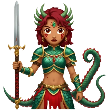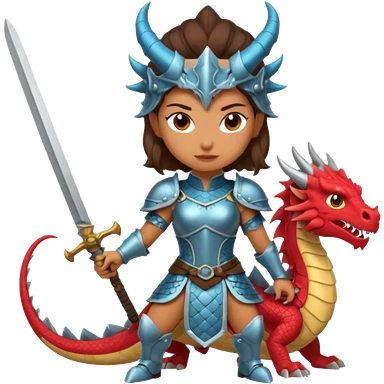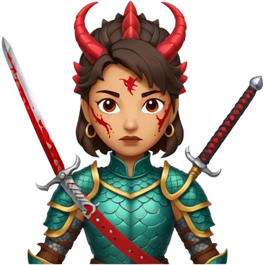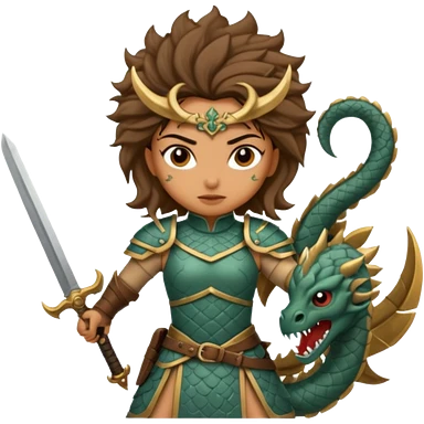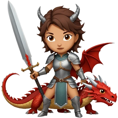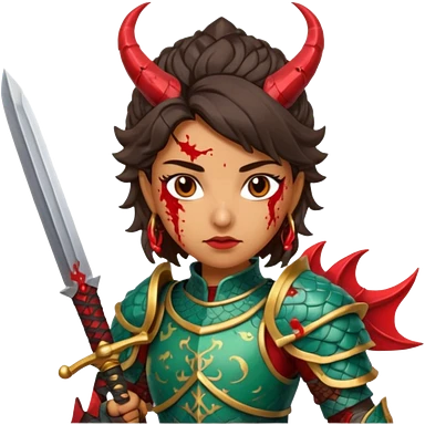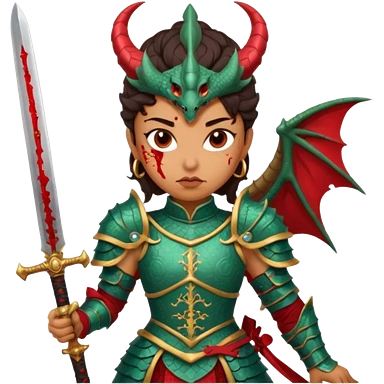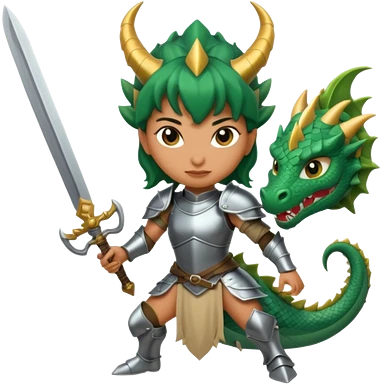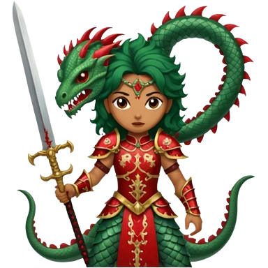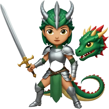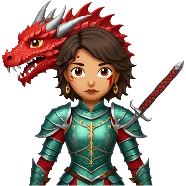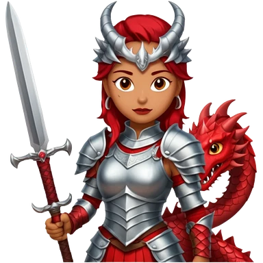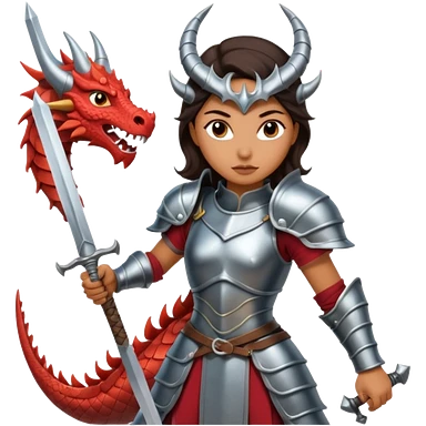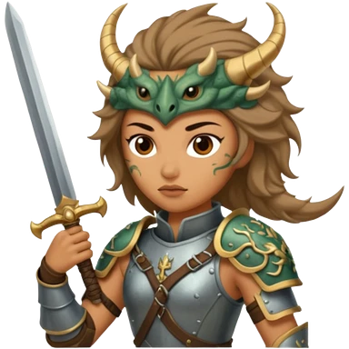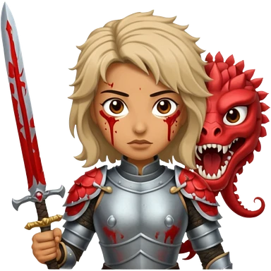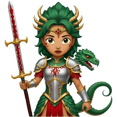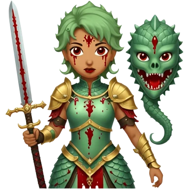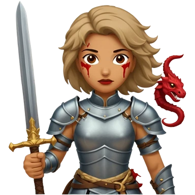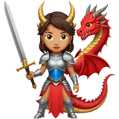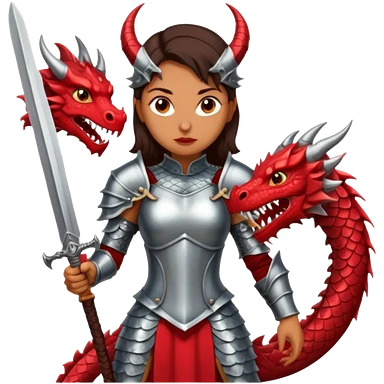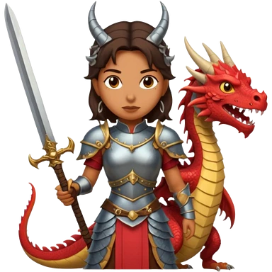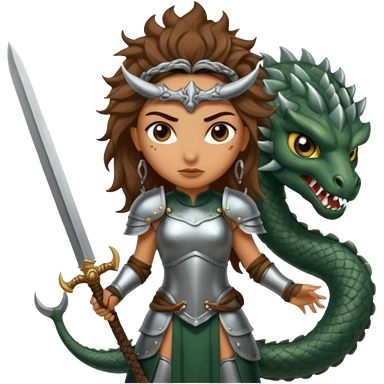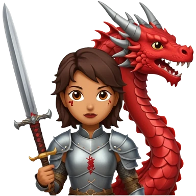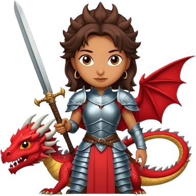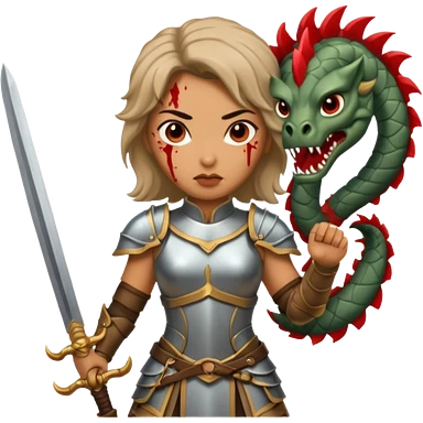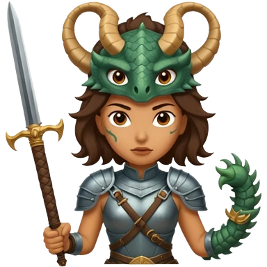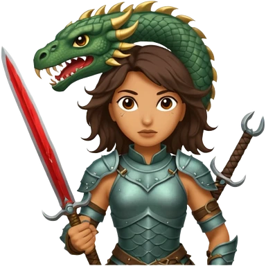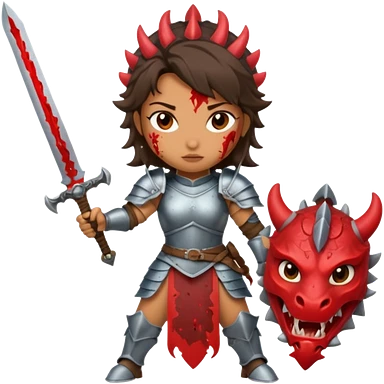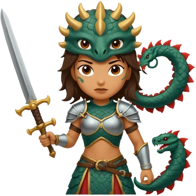 Fierce Latina in armor with a sword next to beheaded dragon emoji