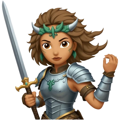Fierce Latina in armor with a sword after a battle cutting off the head of a hydra emoji