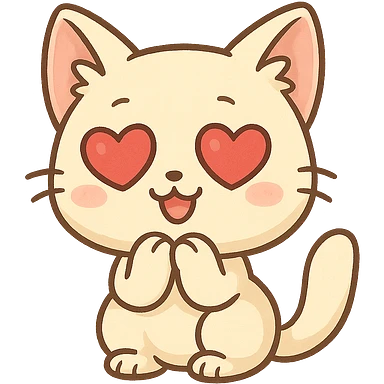chibi cat, tiny paws, sparkling eyes, blushing cheeks, minimal background emoji