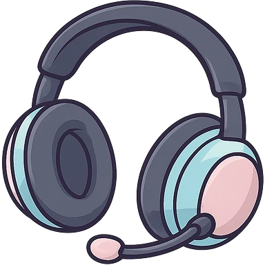 chibi woman with shoulder length choppy brown hair, pink gaming headset, freckles, glasses, and blue eyes emoji | AI Emoji Generator