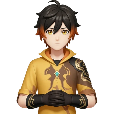 Chibi Zhongli (Genshin). Emoji/stickers. Smiling. Pencil drawn. Minimal details. Light coffee paper texture. Dynamic sequences. Cartoonish/cute/minimalistic. Chibi proportions. Soft shading. Paper texture. Light coffee background. emoji | AI Emoji Generator