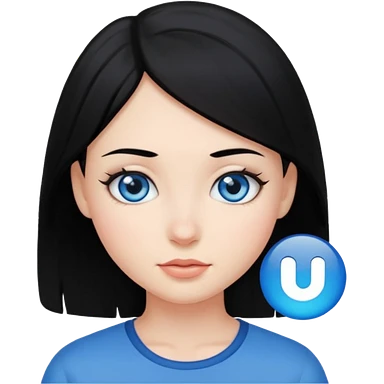 Chica de pelo negro y color de piel blanca con ojos azules emoji