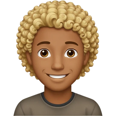 Chico joven latino, piel muy morena, pelo rubio corto rizado emoji