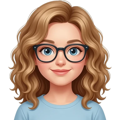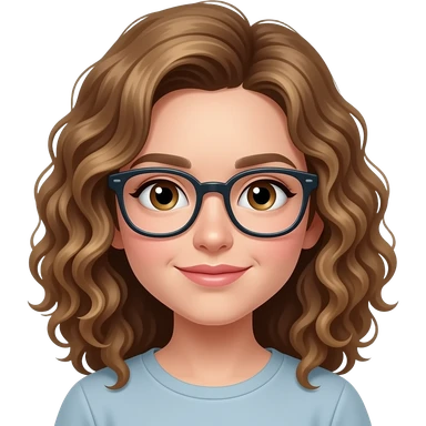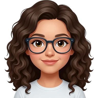 Chica piel guera, ojos cafes oscuros,cabello rizado y lentes emoji