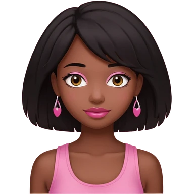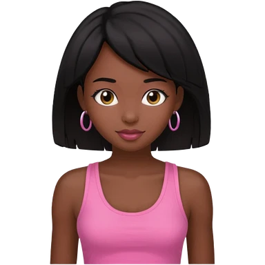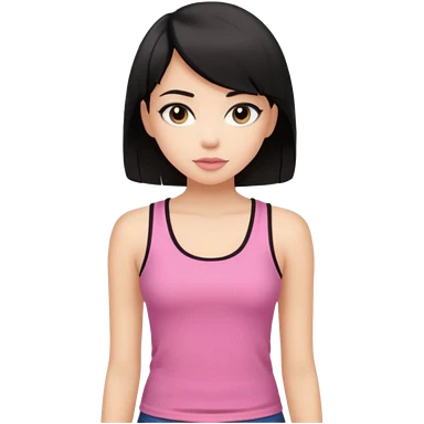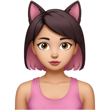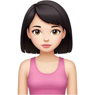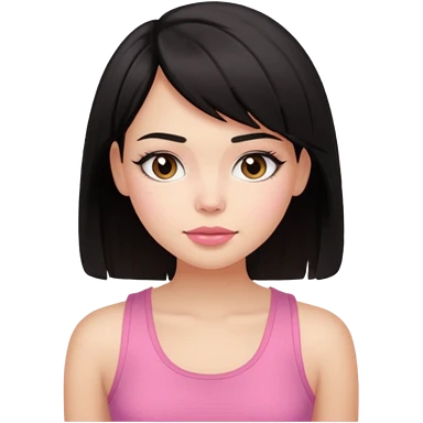 chica morena clara, corte de cabello negro y medio, con una blusa de tirantes simple, rosa y coquette emoji