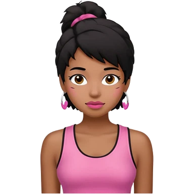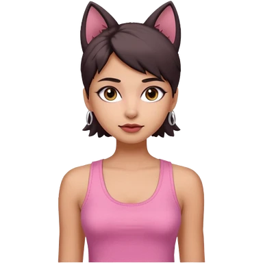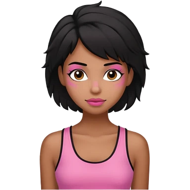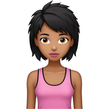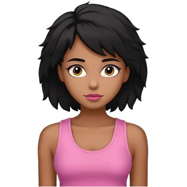 chica morena , corte de cabello negro y un poco despeinado, con una blusa de tirantes simple, rosa y coquette emoji