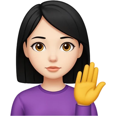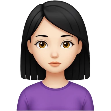 chica bonita con ligero cabello negro con rayas moradas que llega hasta los hombros con lentes cuadrados de estatura pequeña con ropa negra emoji