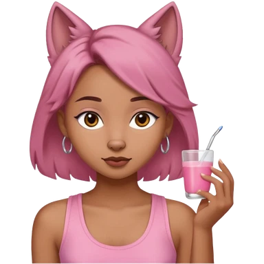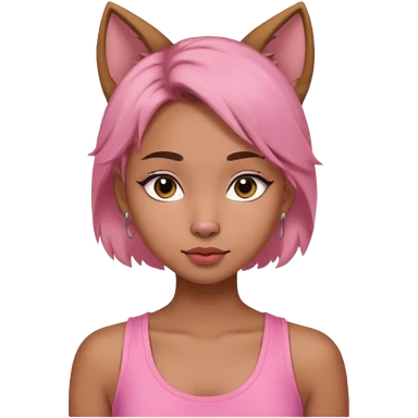 chica morena clara, corte de cabello wolf cut medio, con una blusa de tirantes simple, rosa y coquette emoji