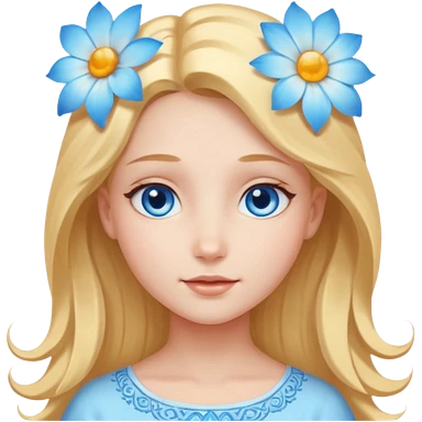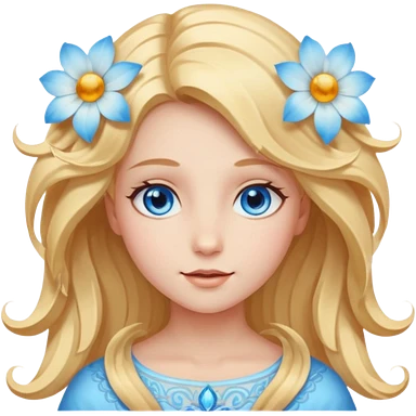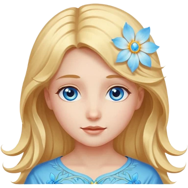 Chica abriéndosele el pelo como una flor, con cara de ángel radiante, ojos azules emoji | AI Emoji Generator