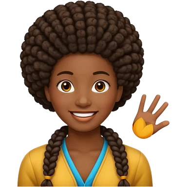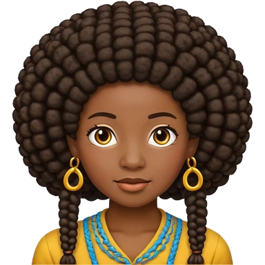 Crea una imagen de una chica con lentes cabello afro con dos colistas tonalidad negra emoji