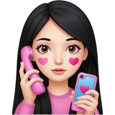 Chica de pelo negro y largo con un móvil rosa y parches de skincare debajo de los ojos emoji
