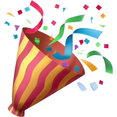 Una cara feliz con una gorra de fiesta y confeti alrededor, ideal para celebrar un logro importante o un evento especial emoji