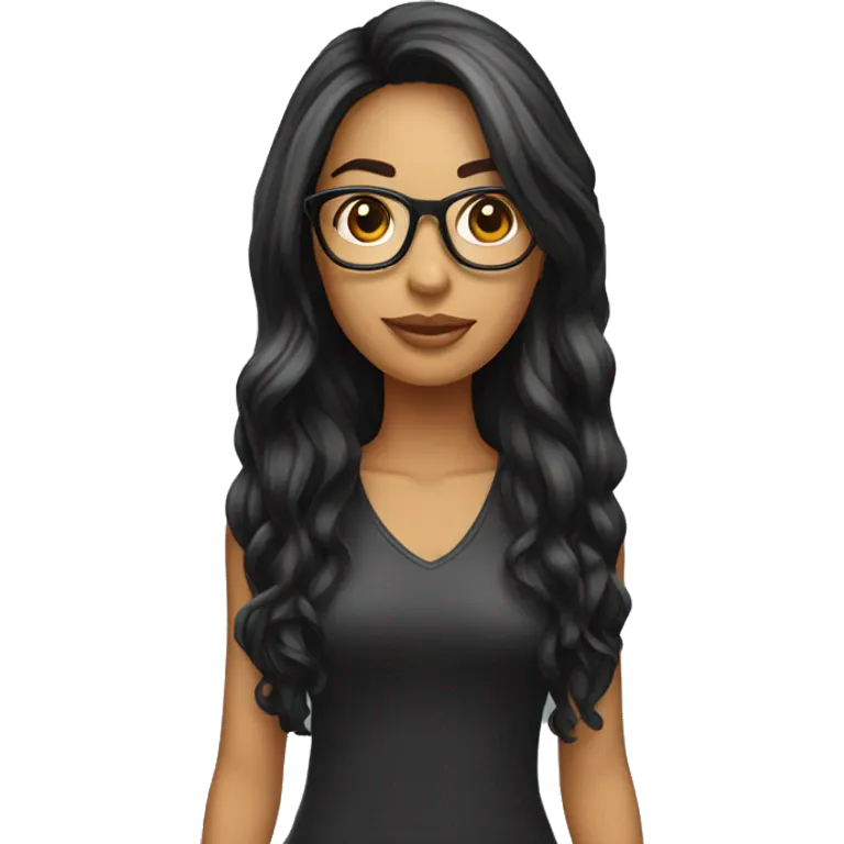 Chica blanca de cabello largo negro con gafas emoji | AI Emoji Generator