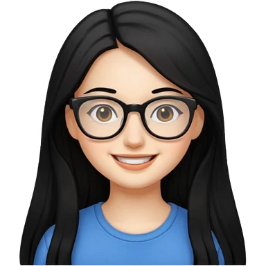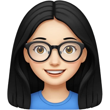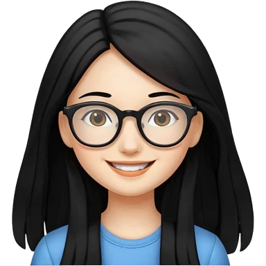 chica cabello largo negro, con lentes que este muy feliz emoji | AI Emoji Generator