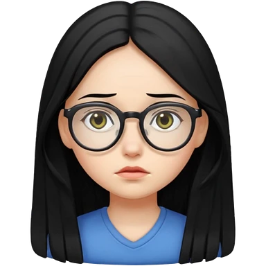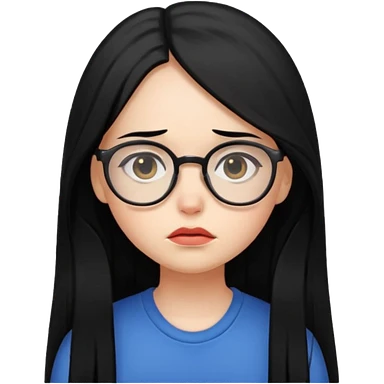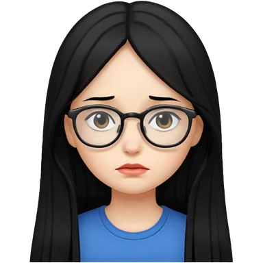 Chica blanca de ojos cafés con lentes, con cabello negro y largo emoji