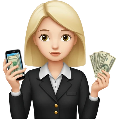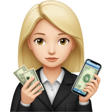 Una pareja (chico y chica de 28 años) vestidos con traje profesional y con dinero emoji