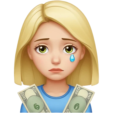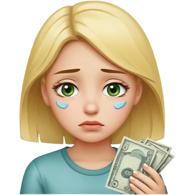 Chica cabello negro, en el marketing digital, que esté preocupada por facturas y otra que esté alegre de ganar dinero emoji