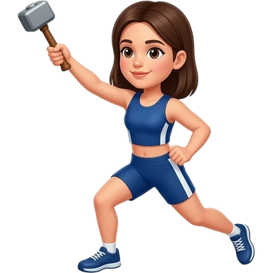 Una chica morena con el pelo 5cm más de los hombros y liso y q esté haciendo lanzamiento de martillo de atletismo emoji