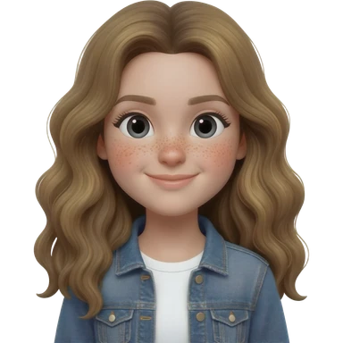Chica con pelo castaño oscuro largo, tes blanca y ojos verde emoji