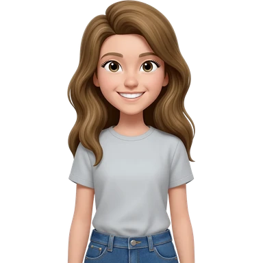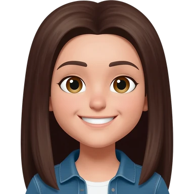 Una chica con piel muy clarita con pelo liso largo de color castaño y unos ojos marrones oscuro y labios grandes y nariz bonita y con unas pestañas que parezca asiatica que tenga las cejas un poquito mas juntas emoji