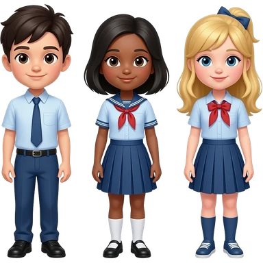 2 chicos morenso y 1 chica morena y 1 chica rubia TODOS CON UNIFORME emoji