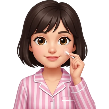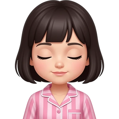 chica de cabello oscuro y corto sin accesorios, con una pijama color rosa con rayas, durmiendo emoji