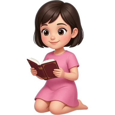 chica de cabello oscuro y corto, sin accesorios, con vestido color rosa, leyendo la biblia de rodillas emoji