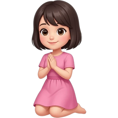 chica de cabello oscuro y corto, sin accesorios, con vestido color rosa, orando de rodillas emoji