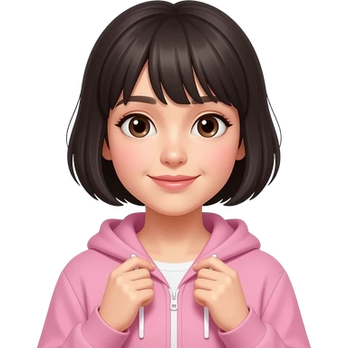 chica de cabello oscuro y corto, con ojos color cafe, con vestido color rosa, estudiando finanzas emoji