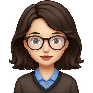 chica de cabello de un largo medio y ondulado cafe obscuro de lentes y con piel blanca emoji