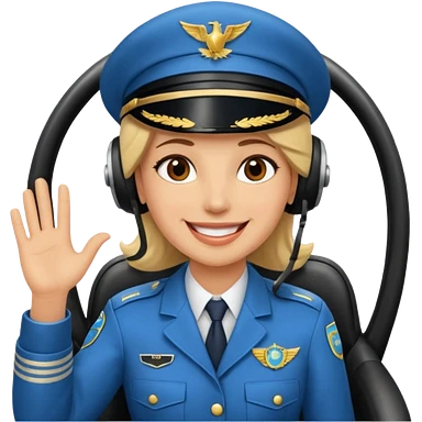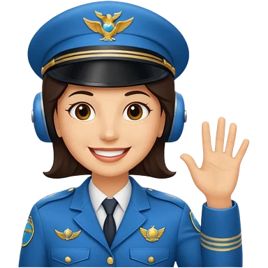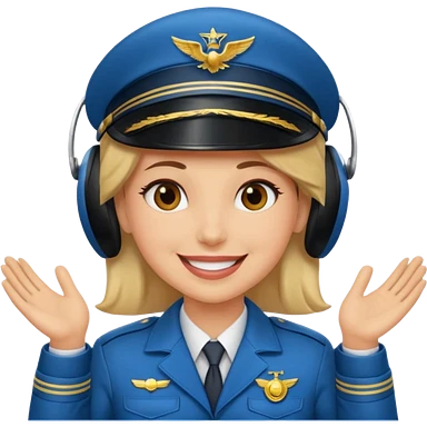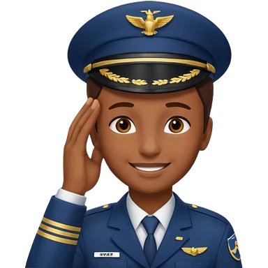 Un piloto de linea aérea sonriendo con la mano en la frente con la pose firme emoji