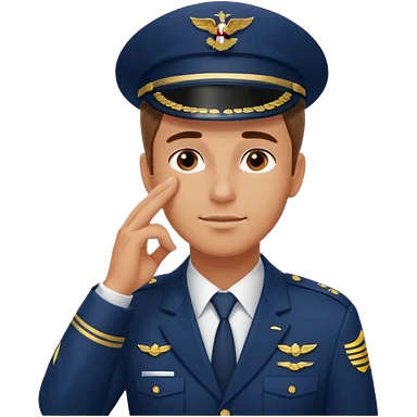 Un piloto de linea aérea con la mano en la frente con la pose firme emoji