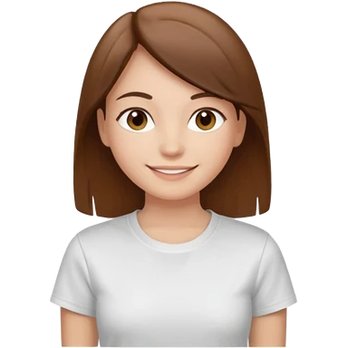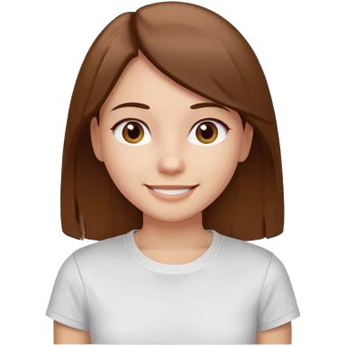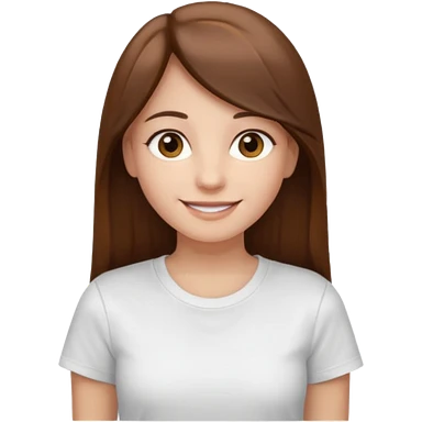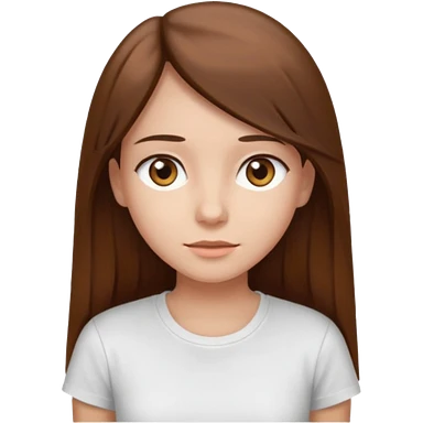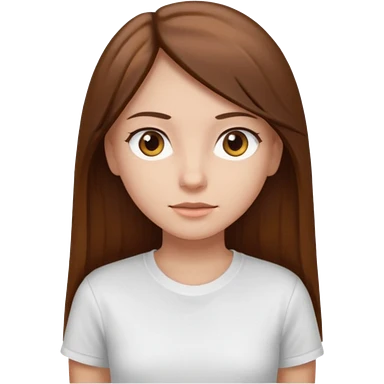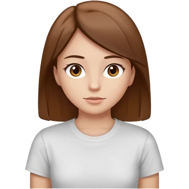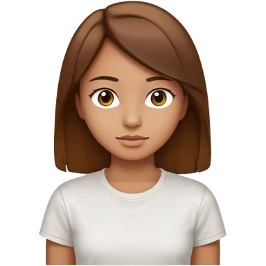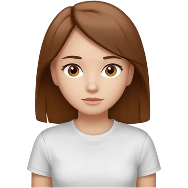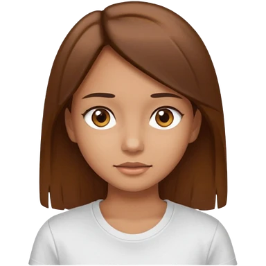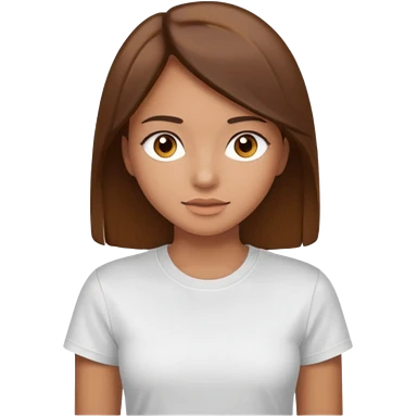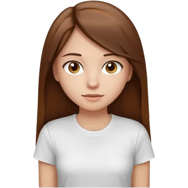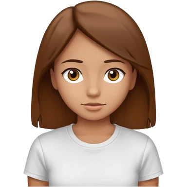 Chica de pelo liso y marrón con ojos color marrón claro y una camiseta blanca emoji | AI Emoji Generator