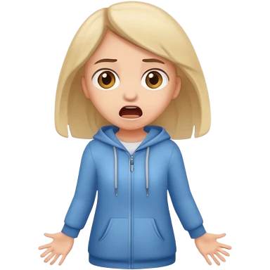 Chica grande asustada de cuerpo completo mirado a la izquierda con pelo castaño pantalones baggy grises y hoodie gris emoji | AI Emoji Generator