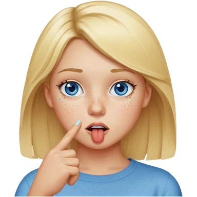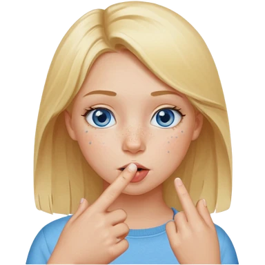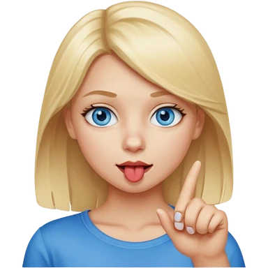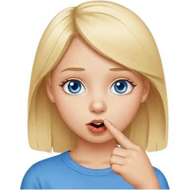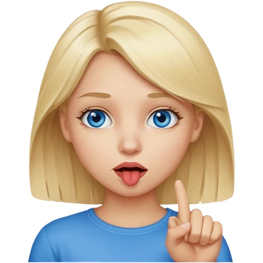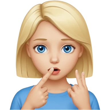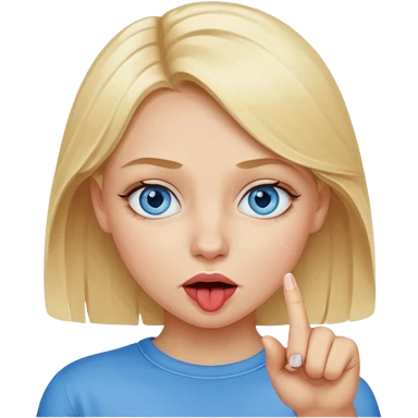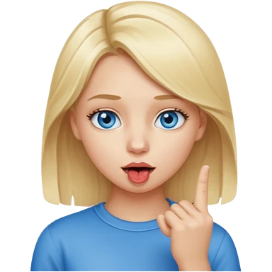 Chica con el dedo índice en la boca , que la chica sea rubia con ojos azules emoji