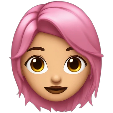 Chica Morena pelo marrón emo y ojos marrones con sombra de ojos negra, vestida de rosa emoji