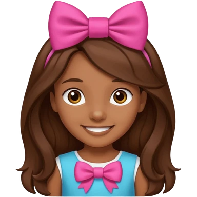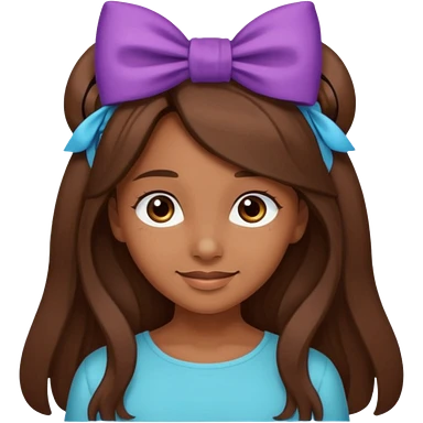 Chica morena, pelo largo castaño y un lazo en la cabeza emoji | AI Emoji Generator
